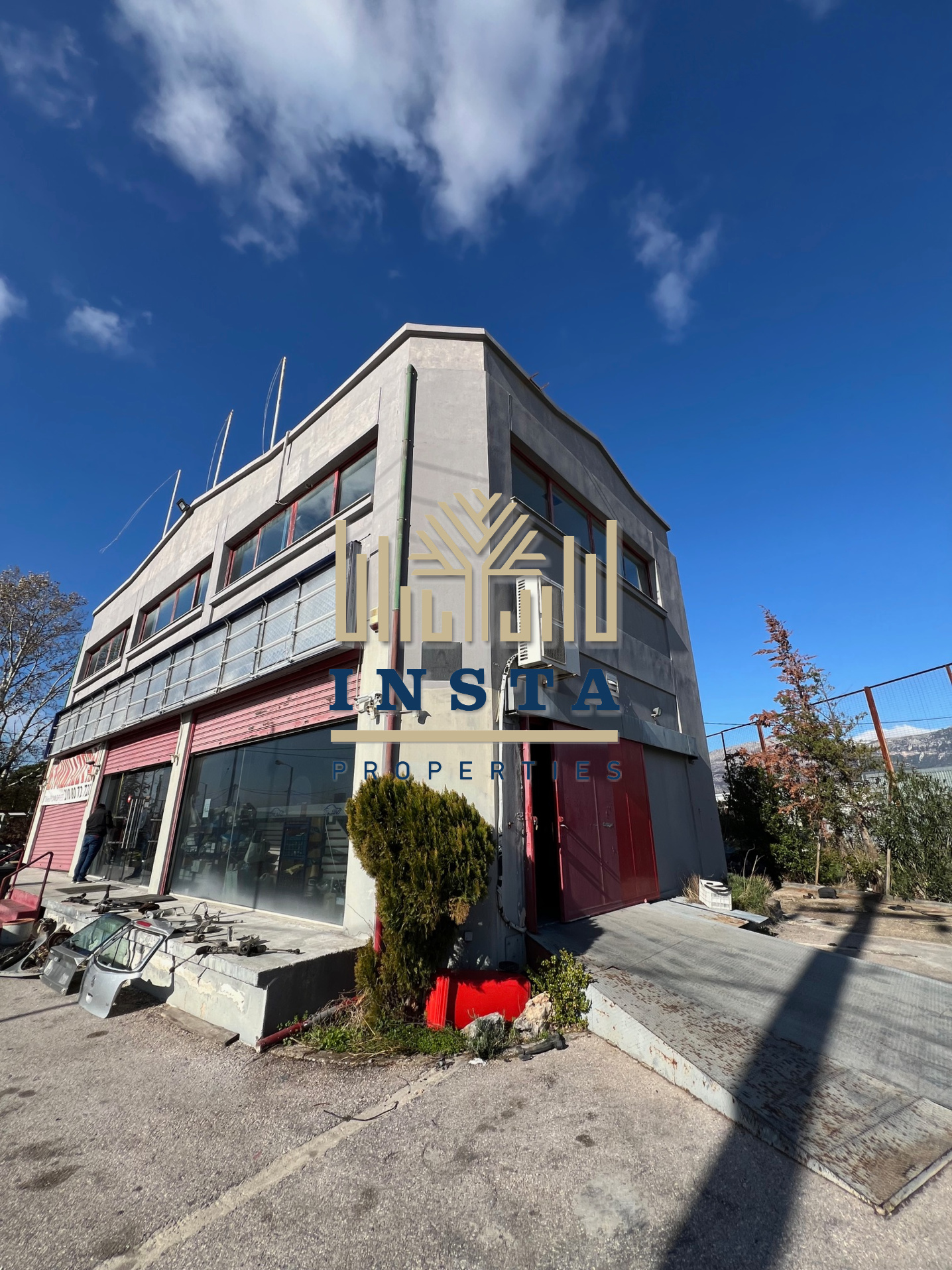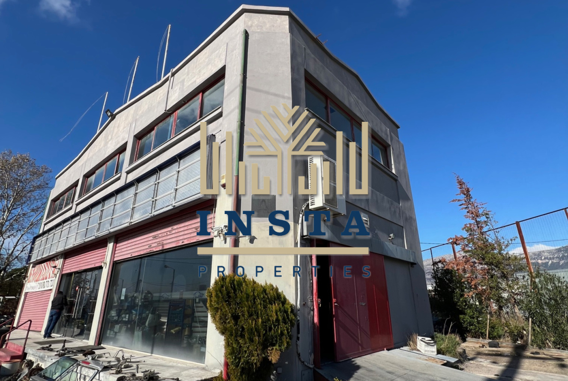 Acharnes – Menidi for rent, commercial property, total area 500sqm, year of construction 2004, on three levels, basement, ground floor, 1st floor. Asphalted plot, corner 1500sqm. It has an elevator, security shutters, three-phase electricity, aluminum frames, unloading ramp, structured cabling, kitchen, wc, air conditioners.