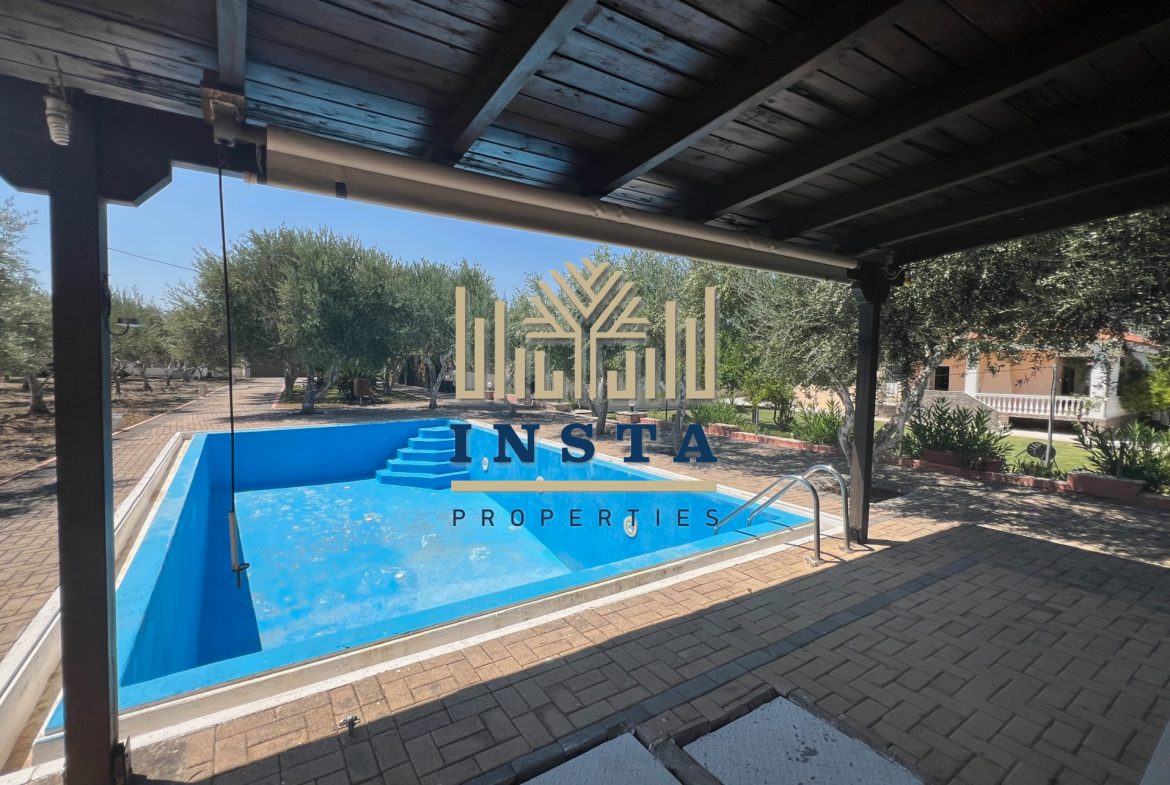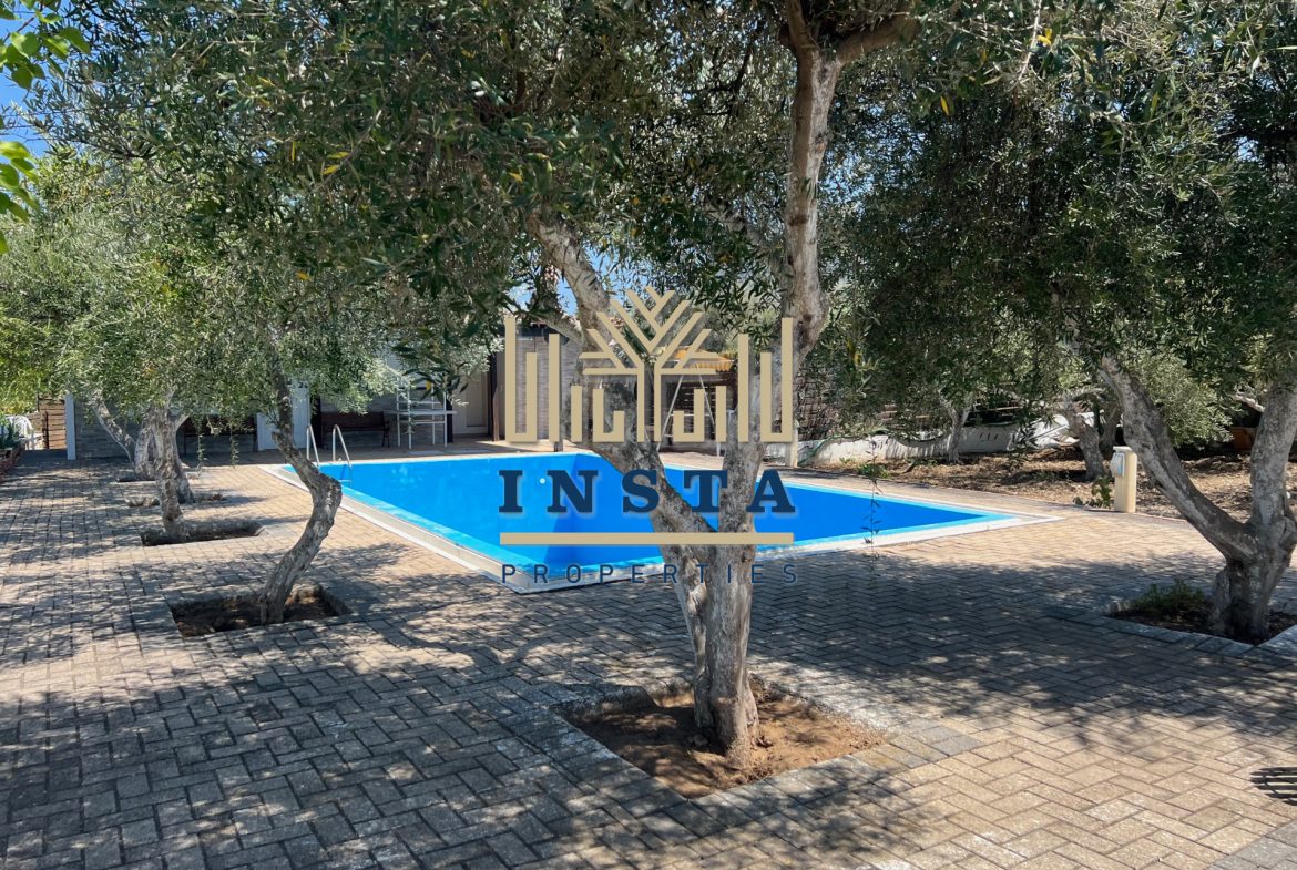It has terraces, a large garden with lawn and olive trees, BBQ, Bar, well, drilling, oil heating, private pool.