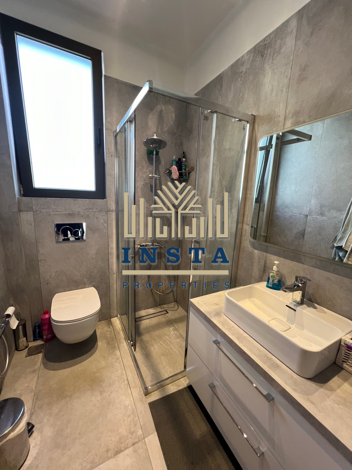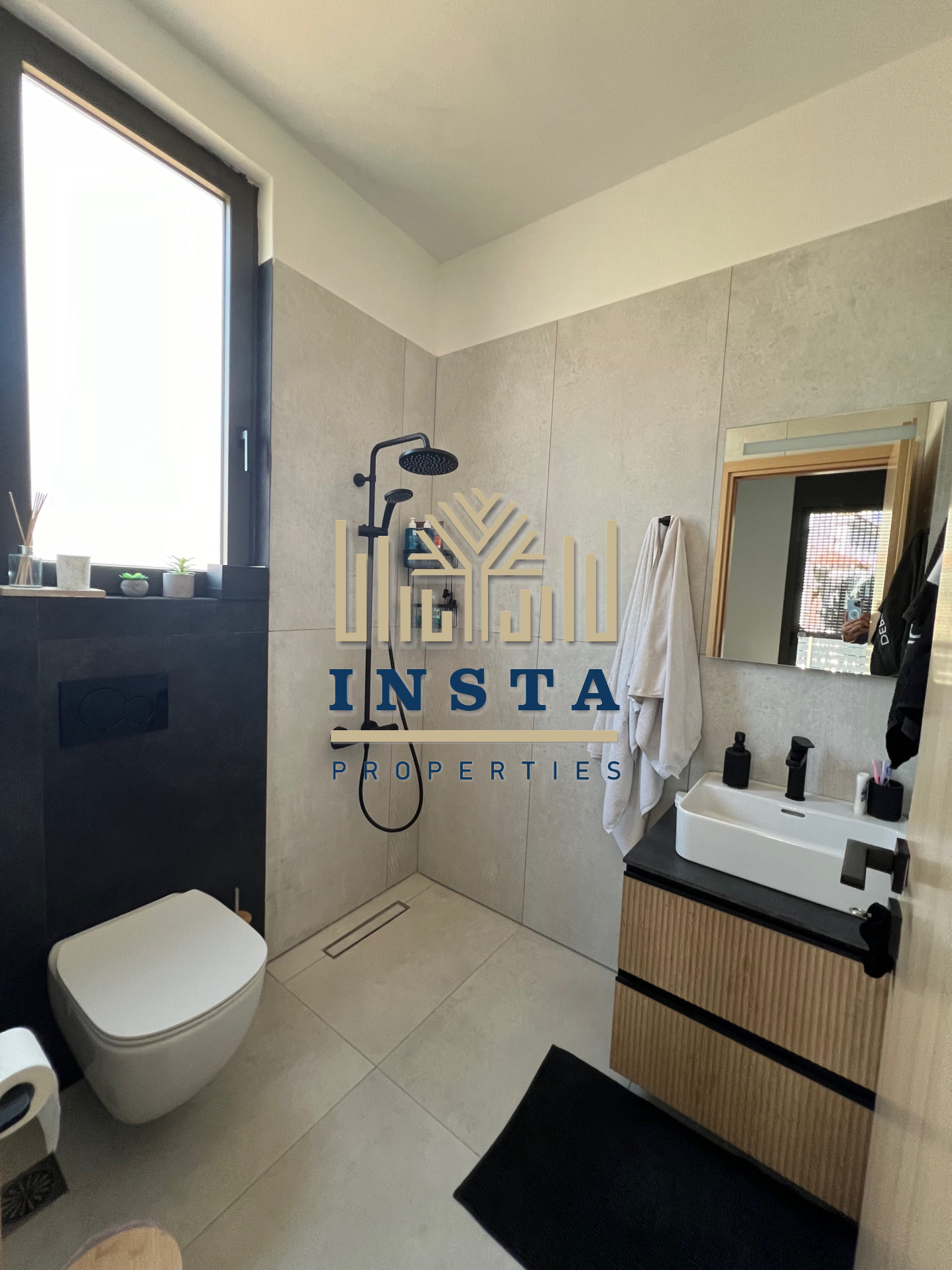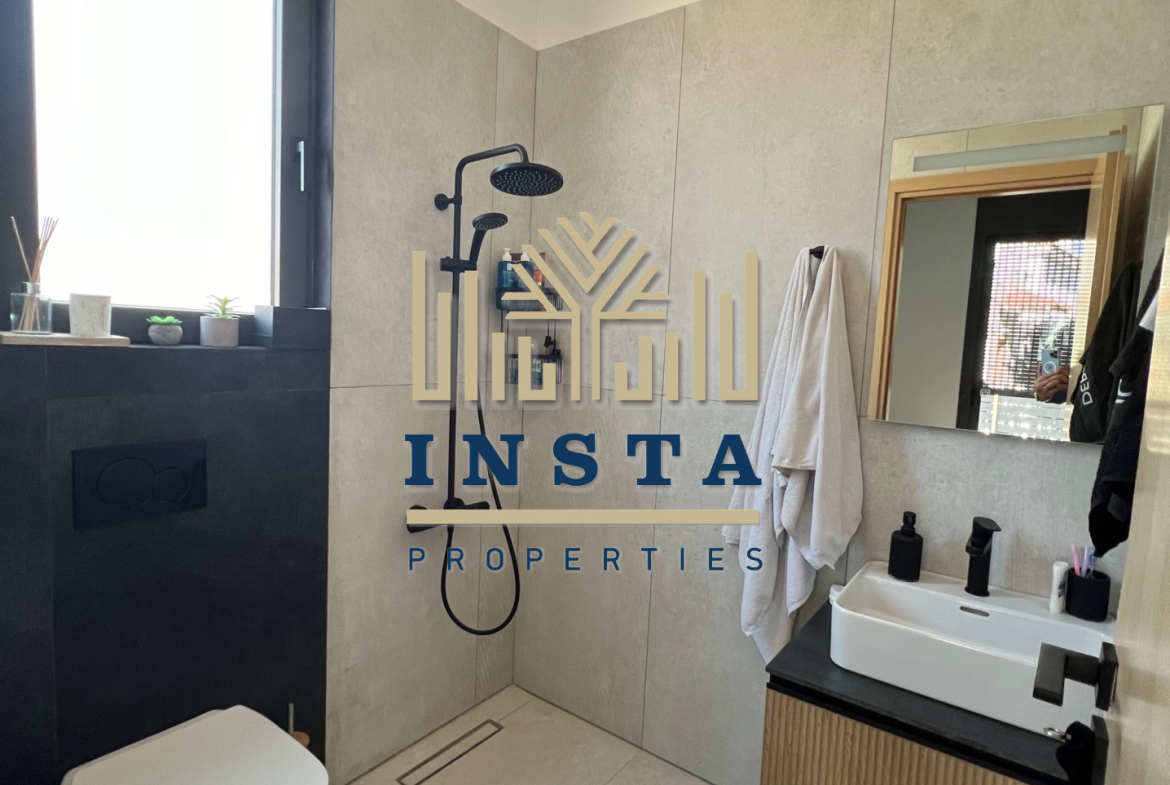 The ground floor space consists of 2 bedrooms, one of which is a master bedroom with its own bathroom, second bathroom, living room – kitchen, dressing room. It has autonomous heating with a heat pump with underfloor heating, air conditioners, energy fireplace, built-in electrical appliances, wooden floors, electric shutters, screens, aluminum frames with thermal break, thermal facade, verandas, security doors, solar water heater, 2 open parking spaces and energy class B+ .